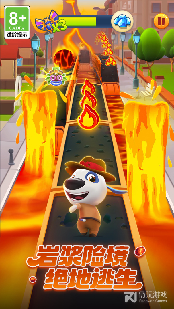 1、你被打劫啦!快让会说话的汤姆猫和安吉拉追强盗,夺回你的金子!不断发现新场景,体验不同跑酷风格,跑酷途中拾取加速器