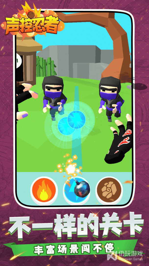 用声音操控忍者前行,避开各种障碍物,顺利抵达终点;