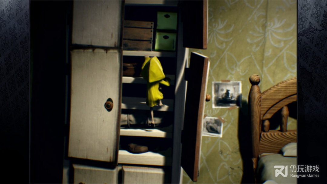3、而玩家将扮演一名穿着黄色雨衣的小女孩——six,在贪颚号中寻找逃出去的办法,游戏以卡通分格向大家展现,玩家需要活用常景中的物品,降低自己发出的声音,在怪物们看不到你的时候快速通过,氛围营造非常优秀