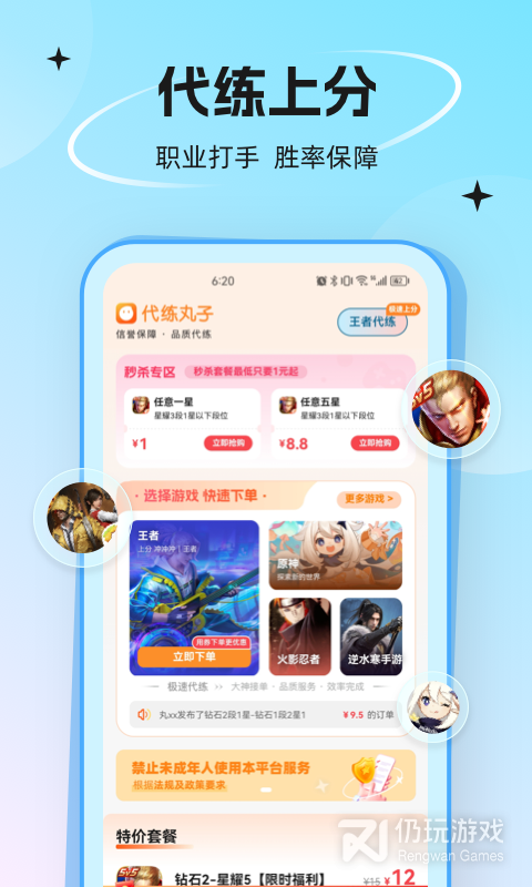 2、帮助大家轻松代练各种热门游戏,还为你提供最新的游戏上分攻略。