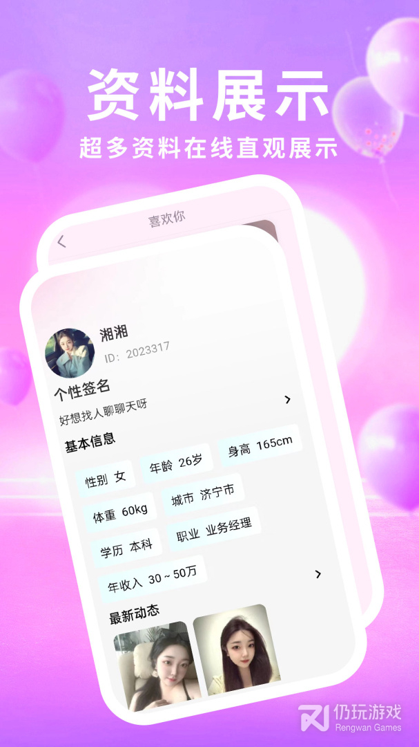 4、平台根据用户所处的城市、性格特征、偏爱等信息会为你智能推荐匹配相互适合的异性用户,再也不用在万千人群中大海捞针,是陌生人聊天交友的好地方,百分百的实拍认证,严苛的人工审核,为你带来一场极致的社交娱乐体验