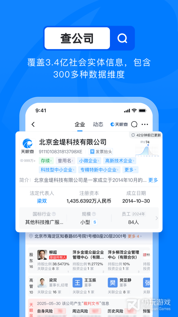 天眼查是一款可以在手机上查询企业信息、数据的软件。本软件覆盖面广,企业信息收录详细且准确,每天更有最新的数据实时更新,是用户了解其它行业企业情况的利器。