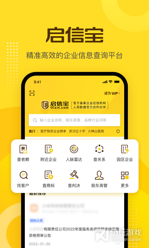 2、启信宝是全国企业信用查询的助手软件。在这里,用户可以实时查询各个企业的动态以及企业相关数据信息,真正实现一秒企业信息全知晓。同时还可以在线查询企业工商注册信息等
