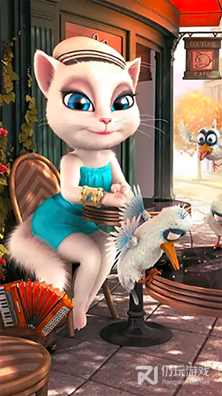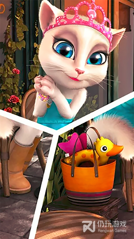 1、你的猫咪名叫安吉拉,它还会说话,你不仅可以给它时尚换装,还可以为它梳妆打扮,为它搭配任意风格,陪伴你快乐成长