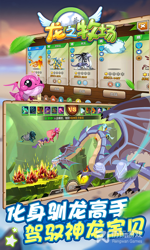2、育龙高手中有几十种可爱的小龙来让玩家们饲养,玩家们还可以通过不同属性小龙的结合来创造出全新种类的龙。为神龙们组建一个个家庭让他们相爱并培育出下一代,快来用自己的双手来建造一个神龙氏族吧