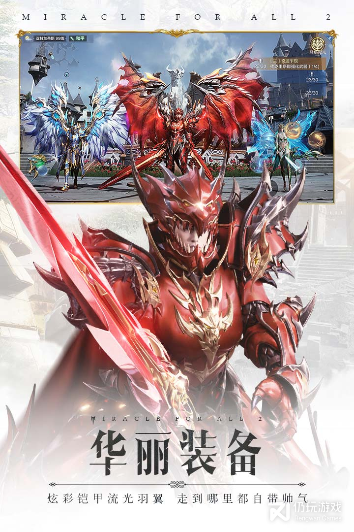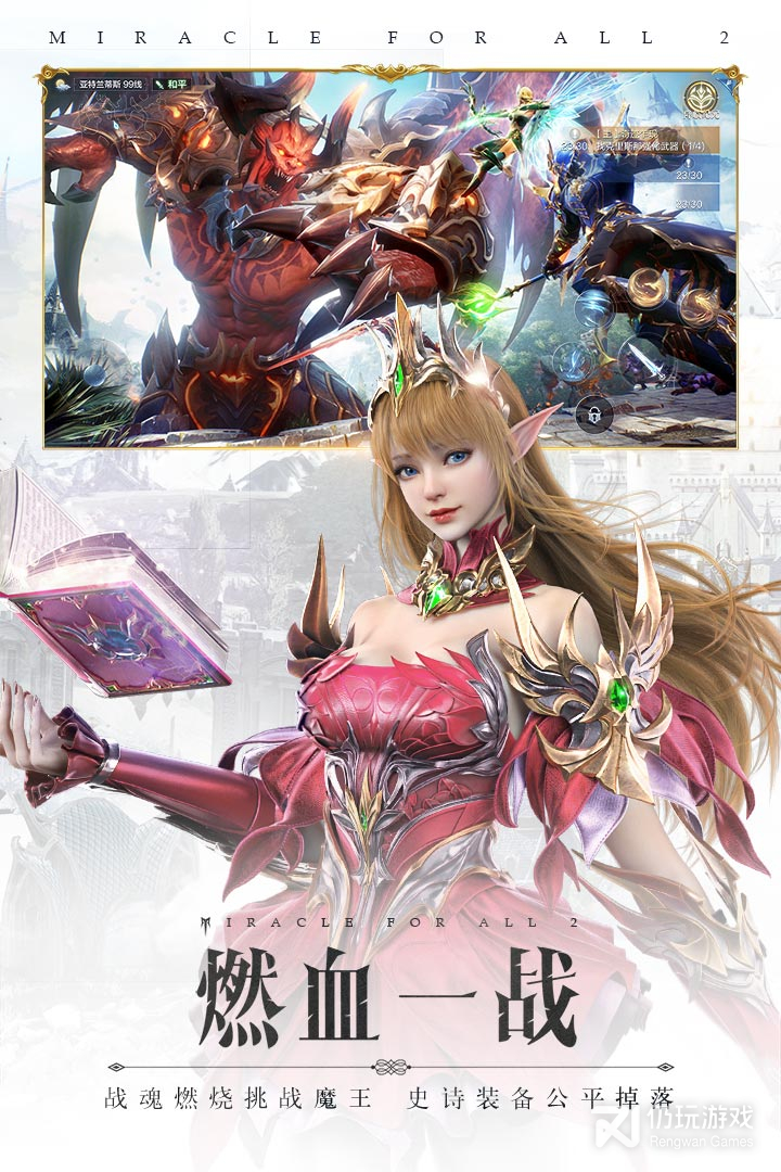 全民奇迹2是一款游戏画面非常唯美的西方魔幻动作冒险手游,经典的三职业法师,战士,弓箭手可以选择,不同的职业有着不同的特色,玩家需要不断的升级解锁各种玩法,更好的提升自己的战斗力,有着各种强大的Boss可以进行挑战。