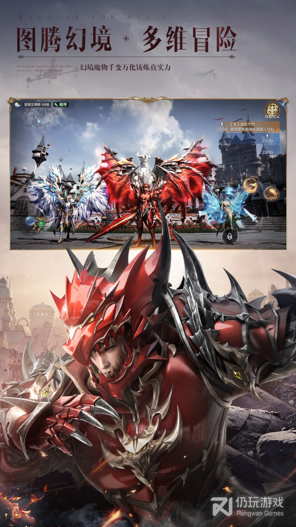 全民奇迹2是一款腾讯旗舰级魔幻华丽手游。穿梭在UE4引擎演绎的华丽魔幻大世界里,身临其境般的沉浸体验。去感受,乘风翱翔展翅冲刺,掠过水面疾行在汹涌波涛中,体验海陆空三栖的无束缚探索,具有魔法韵味的炫目技能,让每一次战斗都变成一场视觉盛宴,享受独特铠甲美学和流光羽翼的绚丽魅影。在这里,一起解禁你的无限魔幻想象。