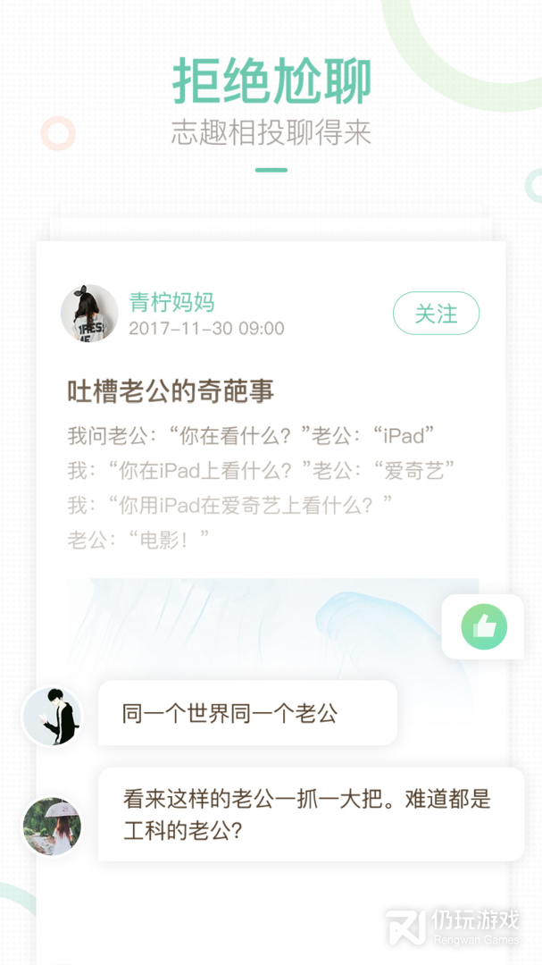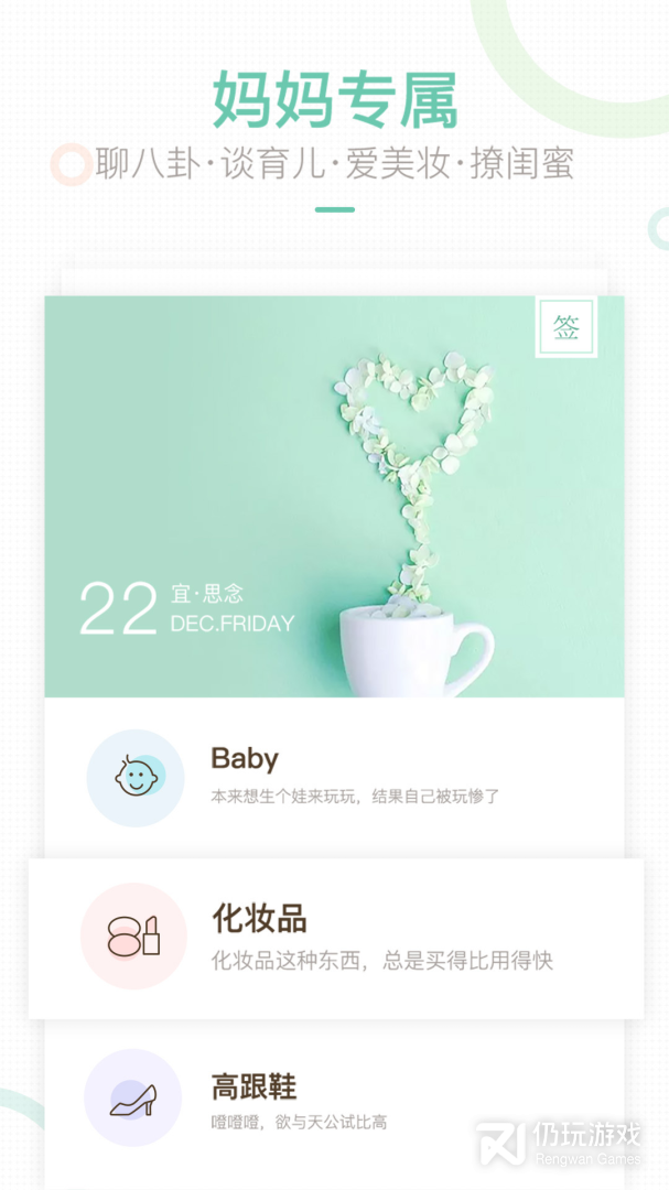 3、妈妈网轻聊专注于亲子领域,定位于女性群体,致力于让每个女性享受做妈妈的乐趣