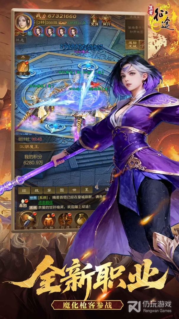 2、王者征途是一款魔幻仙侠类arpg手游,游戏中带有多种多样的系统玩法,放肆的全自由PK竞技对战,你还在等什么?《王者征途》诚邀您共闯江湖路