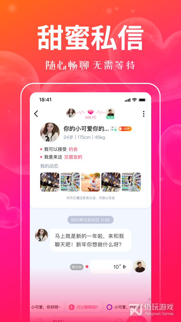 1、让你实时在线认识不同的人群,更好的感受到随时在线交友互动的乐趣。