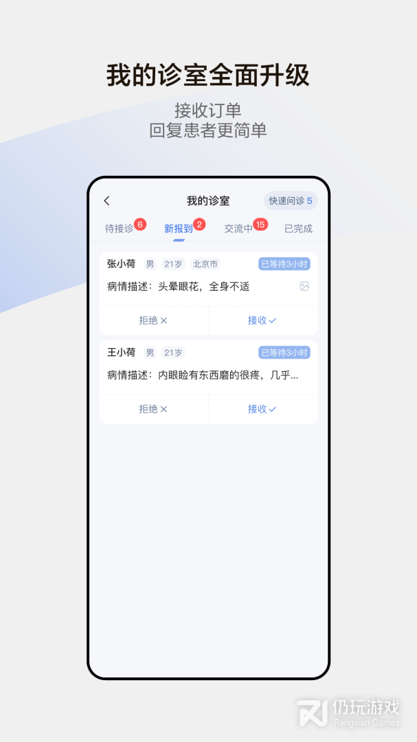 1、简单快捷的优质诊疗服务,诊疗后能够第一时间方便的买到需要药品。就像在医院看病一样,再也不用排队看病啦
