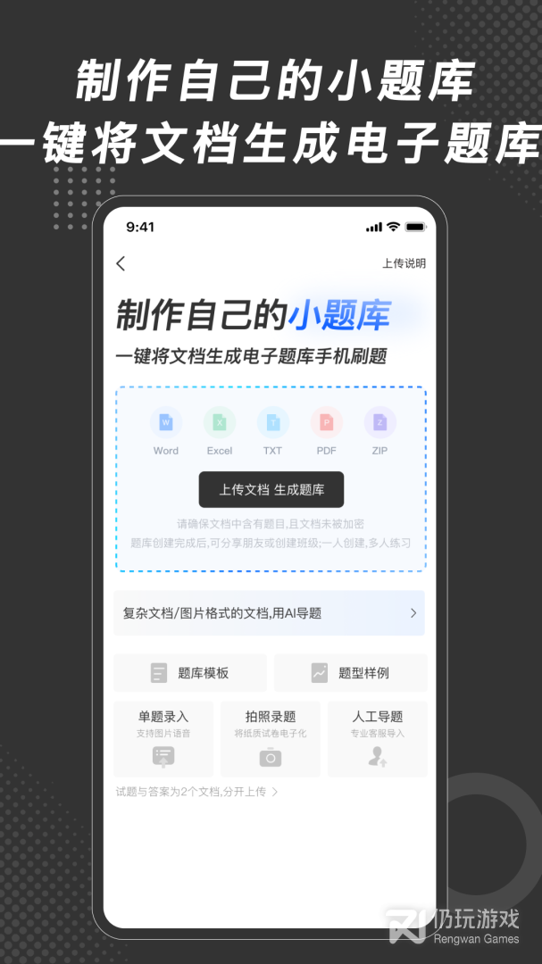 2、该版本是,满足了一些喜欢使用的用户的需求,在这里用户可以导入自己的试题,还可以创建一个属于自己的小题库,让大家可以更好的进行重复巩固练习,帮助大家轻松的掌握更多的知识
