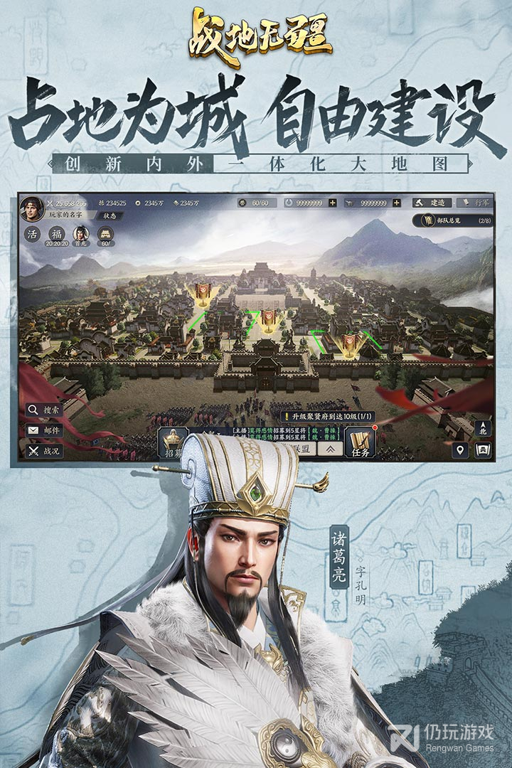 《战地无疆》是一款全面复刻真实三国,具有极a高代入感和自由度的战争策略手游。游戏首创村庄建设玩法,建设自己的村庄,从荒地到繁荣。玩家将身临极致细腻写实的3D大世界,利用天时(四季变化昼夜晴雨)、地利(山川河流平地沙漠),进行调兵遣将,享受作为一方君主运筹帷幄、临阵杀敌的乐趣。玩家可随时拖拽改变行军路线,可运用埋伏躲闪包剿等实时操作,让战争更具策略性。