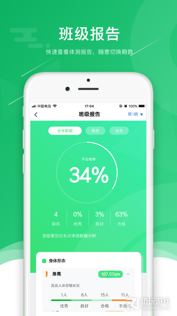 4、班级报告:快速查看体测报告,随意切换期数