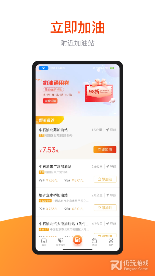 1、微油app官方下载,让所有车主都可以便捷低价加油,同时微油app还拥有非常多的交通服务,不仅可以查询停车位,支持道路救援等,欢迎下载