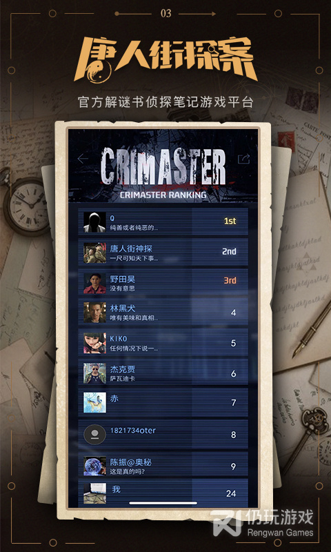 1、在这里有着许多的谜题案件等待你去解开。游戏结合了历史文学的内容,你可以利用自己智慧的头脑来寻找案子中的蛛丝马迹,并成功侦破。游戏画面做的也还是很精美的,并且还有许多的线上玩家与你一起PK,看看自己能否成为榜首吧