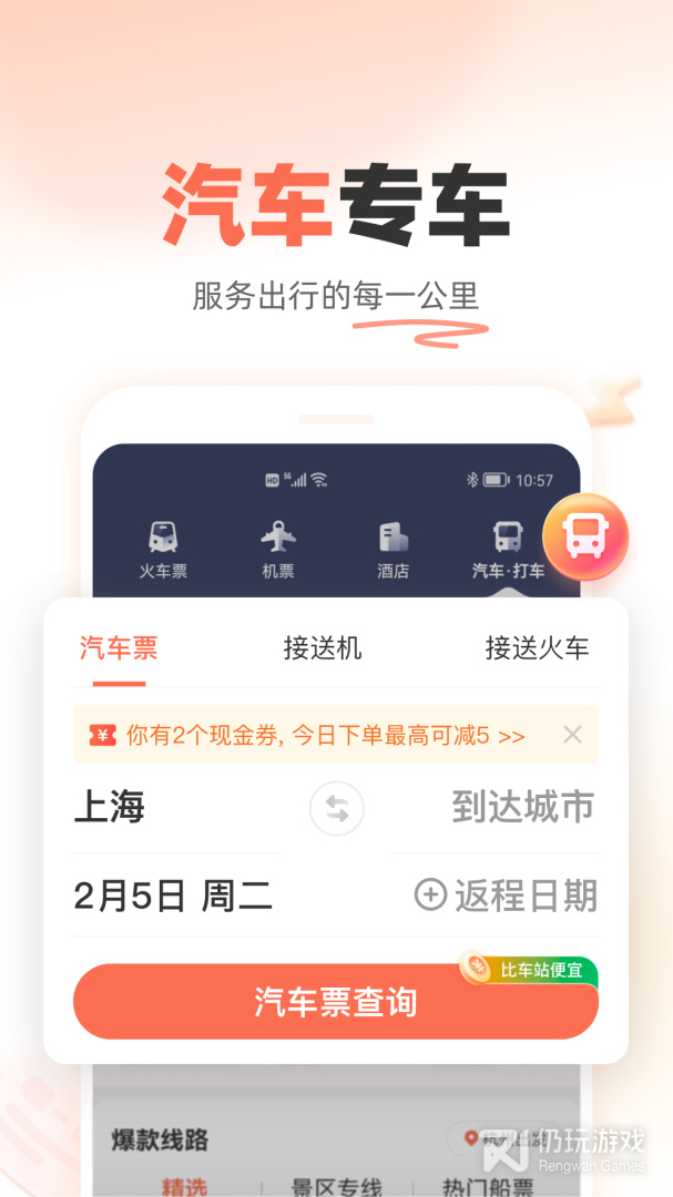 1、特点五:铁友旅行支持查询、购买全国汽车票