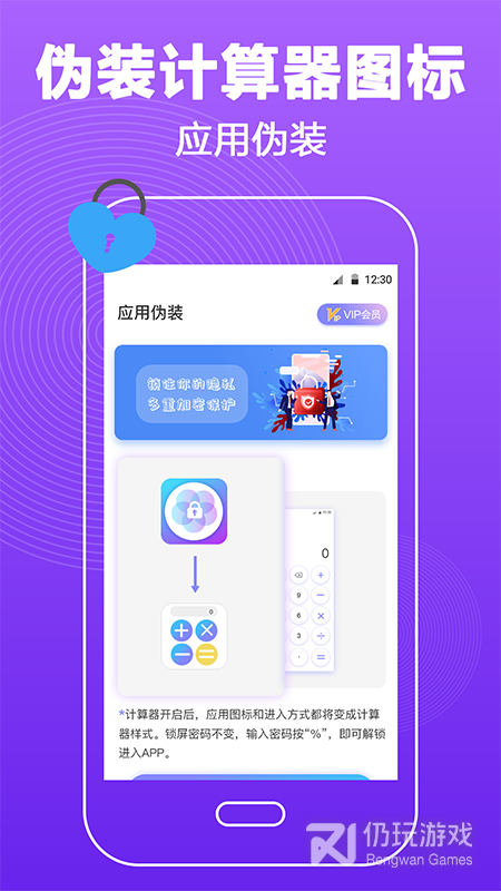 2、能够帮助用户将该软件图标伪装成计算器图标,并且可以随时添加图片、视频、音频等内容加密管理,可以设置密码锁和锁屏,使用方法简单,还有密码管理功能,解决密码容易忘记等问题,使用吧