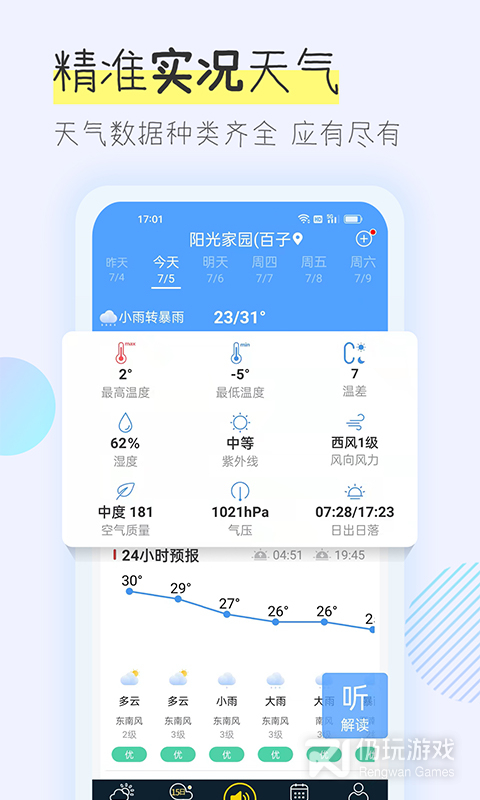 4、享受免费无忧的24小时天气查询操作,这里为您提供更多的玩法,体验不同的查询服务