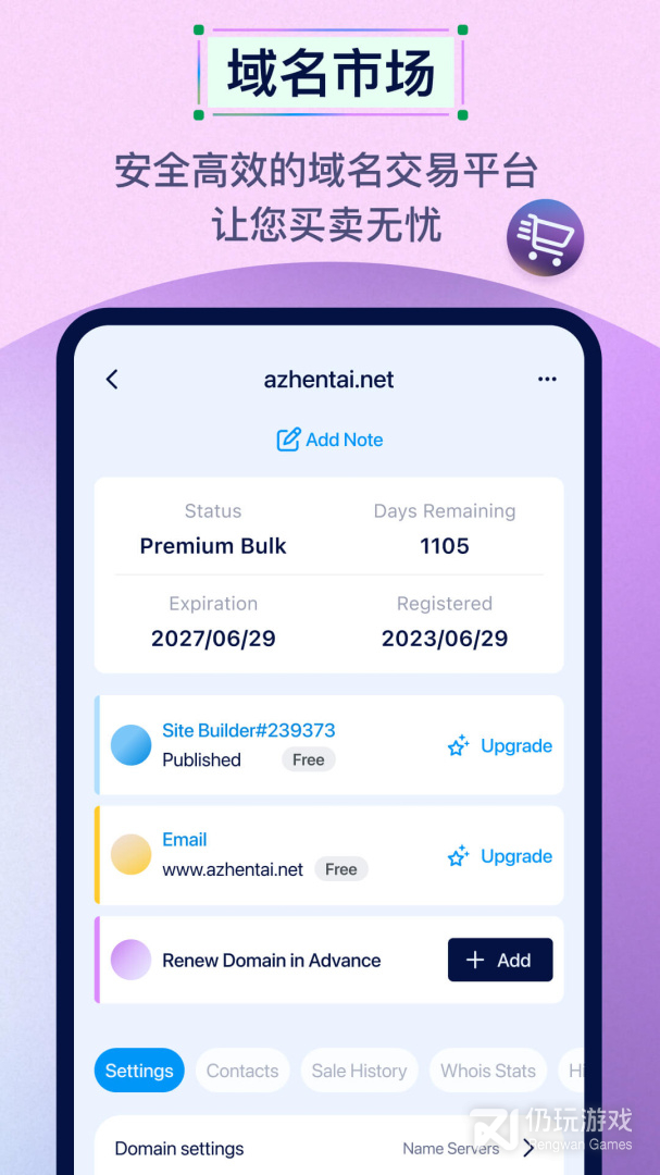 从dynadot官方app搜索,注册并管理域名!这里您可以接触到运行企业网站或者保持域名投资策略优势所需的所有域名工具。在app上,您可以搜索域名完成注册,发起域名转移,可以用我们的域名市场得知热门域名拍卖信息以及即时更改DNS设置等等。app的设计采用了简洁,方便的导航界面,确保您能迅速有效地完成您想实现的域名相关效果。