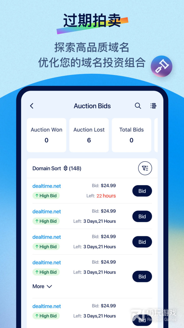 想随时随地获取有价值的域名?使用dynadot app,即便正在度过繁忙的一天,您也可以从域名市场发现感兴趣的域名,出价并跟踪。app与我们网站域名市场的域名列表相连,这样无论您使用任何平台,都能轻易地跟踪域名。在我们的域名市场/用户拍卖中,您可以访问过期域名拍卖或者用户列出拍卖的域名,进而获得新的高质量的域名获取机会。您甚至还可以直接在app上出售域名!