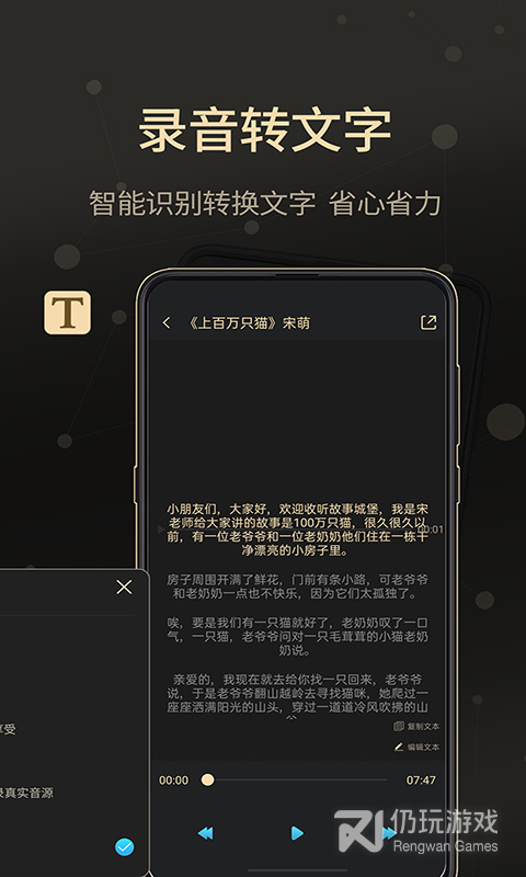 3、提供多种音频格式录音选择,流畅不卡顿。还支持智能配音模式,输入文字就能急速转换为语音,还配有录音剪辑功能,操作简单,让你轻松剪辑精彩录音