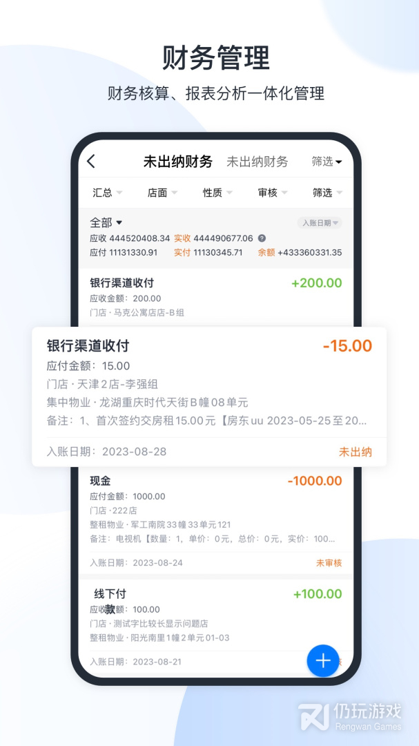 4、各项数据一目了然,入住率、租约状态、财务收支..可视化数据清晰明了