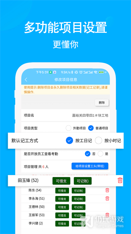 2、方便现场考勤:在施工队伍中,可以随时查看员工出勤情况