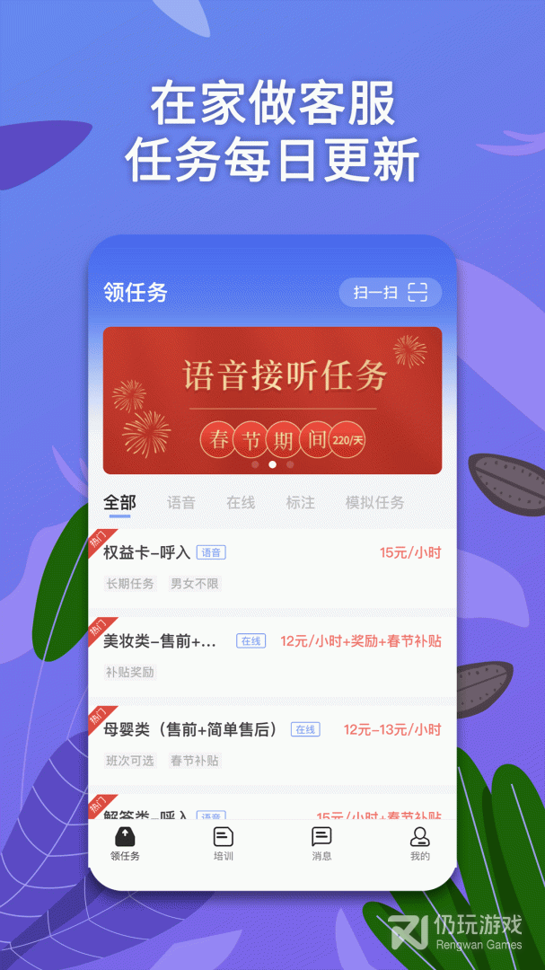 一个您可以利用空闲时间赚取报酬的客服共享任务平台!