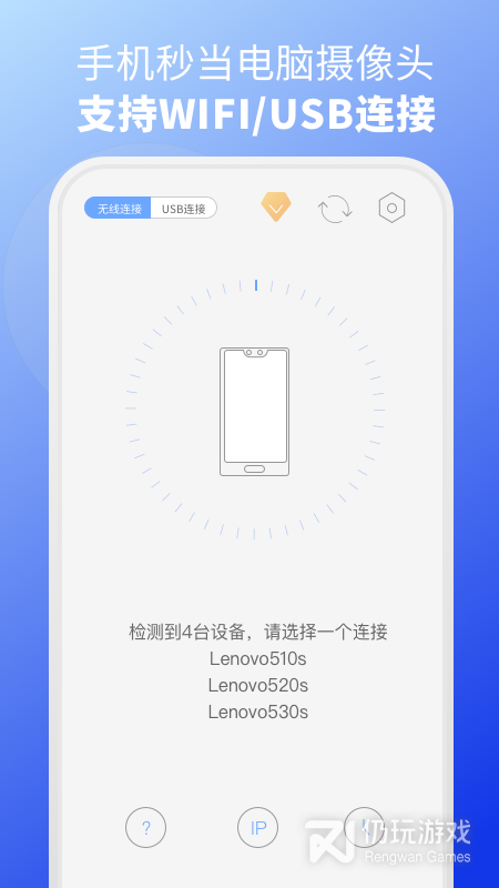 EV虚拟摄像头中,用户只需要将自己的软件打开就可以搜索一些相关的设备进行连接了;