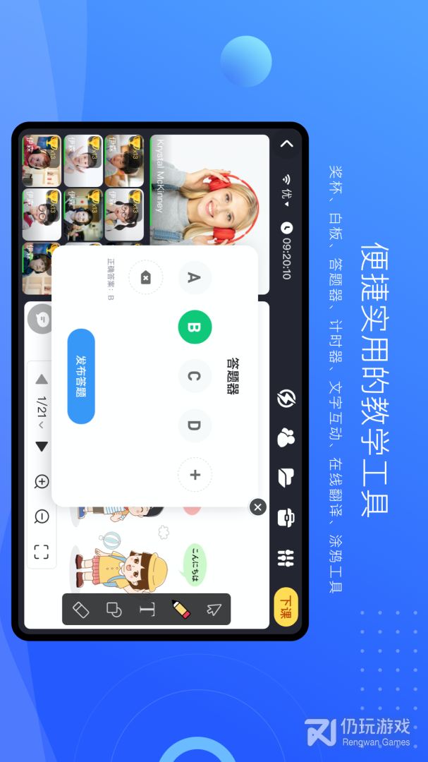 1、可以实现远程连接,帮助老师更稳定的教学,而且还有很多辅助小工具,帮助大家更好的学习互动,老师管理学生也更加方便了
