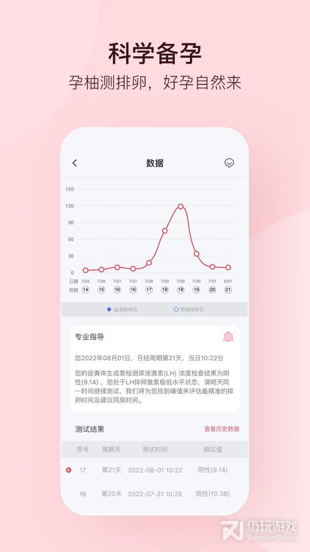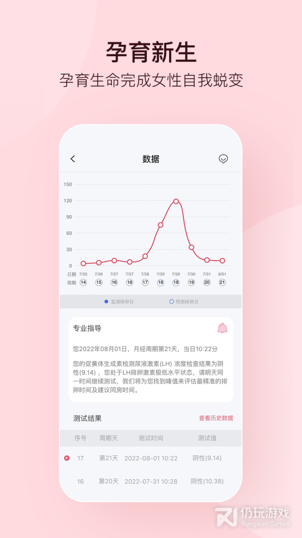 ·数据功能:自动绘制每个周期的指标曲线,快速定位峰值,准确判断排卵时间。