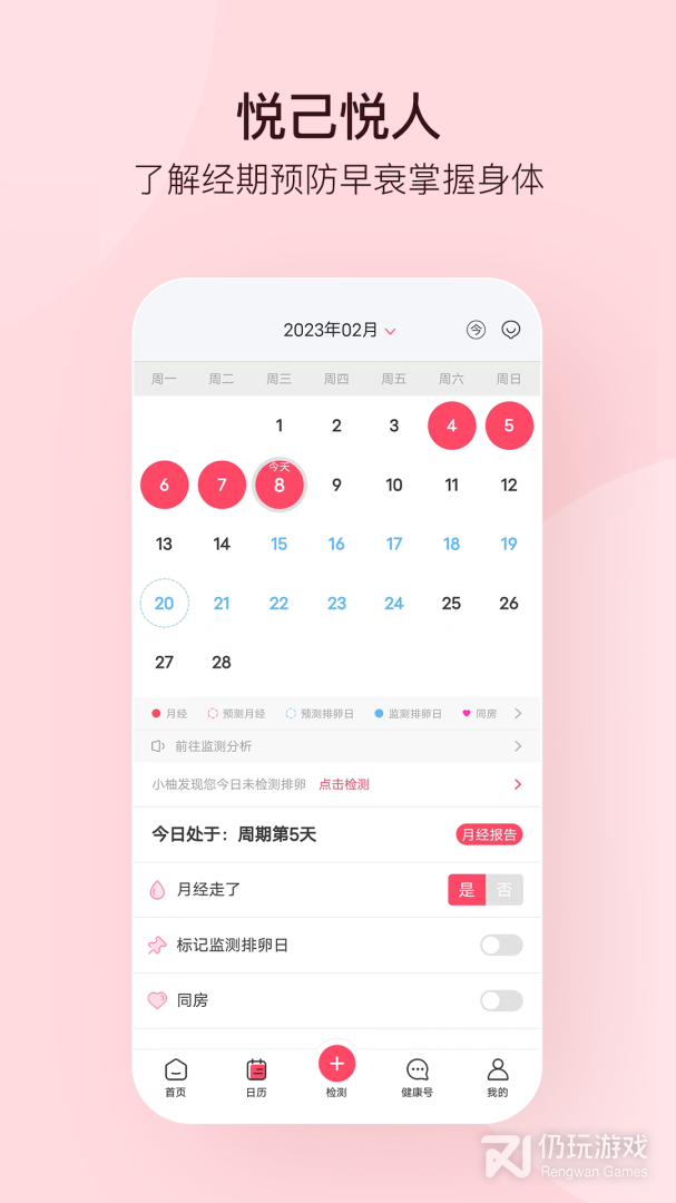 1、所支持功能多,会详细记录你每个重要日期,比如生理期、安全期等;