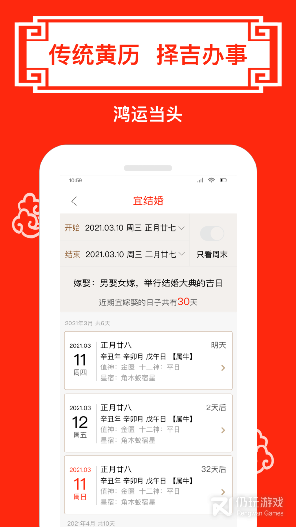 信息提供还有一些运势计划推荐,以及传统节日一目了然;