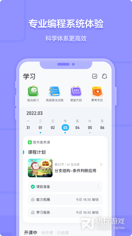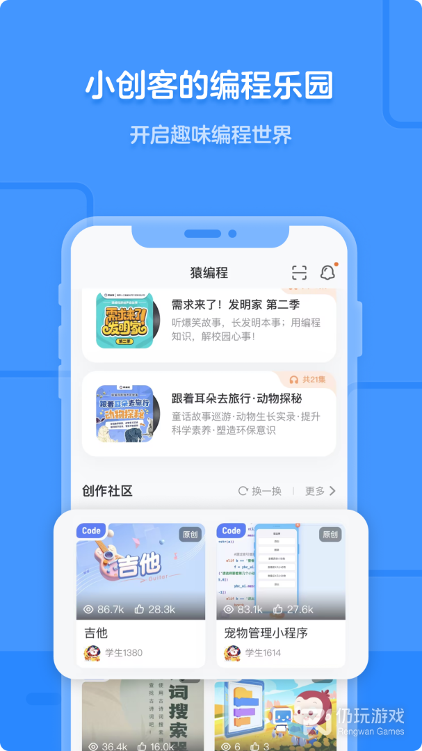1、猿编程为猿辅导旗下少儿编程教育平台,为越来越多的孩子提供了编程学习服务,小朋友们可以跟随app完成不同阶段的编程语言练习,并更好的激发孩子的思维活跃度
