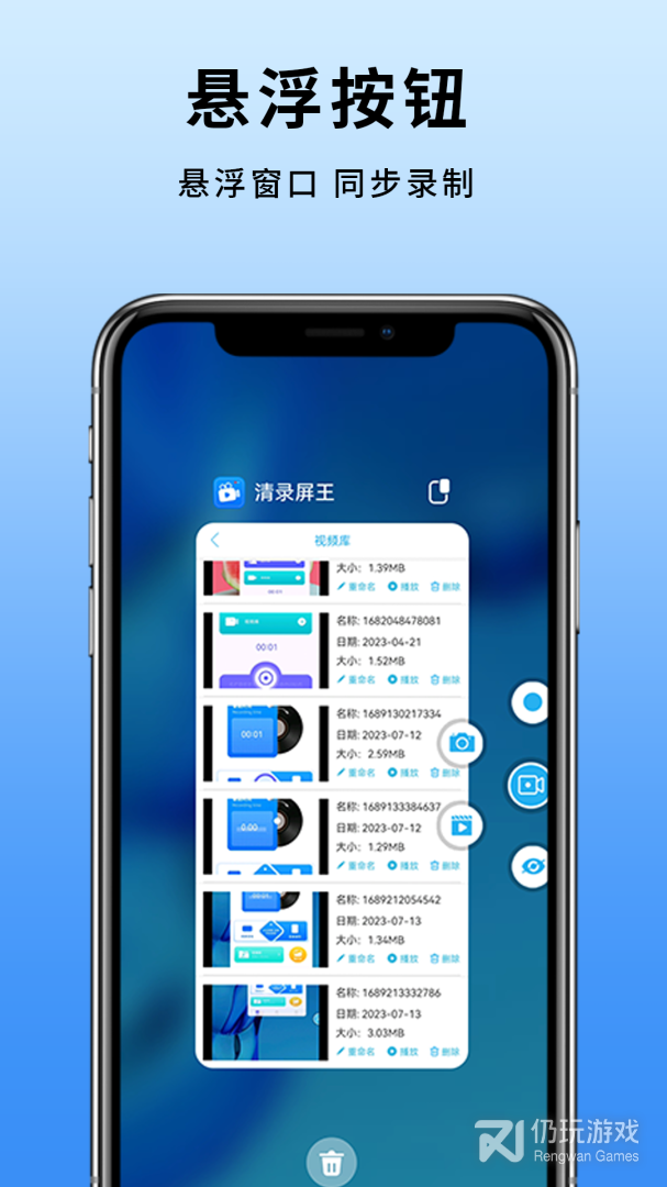 3、录屏:横屏、竖屏任意切换,同时可开启/隐藏悬浮窗录屏模式,可以摇一摇唤出悬浮窗控制录屏工具