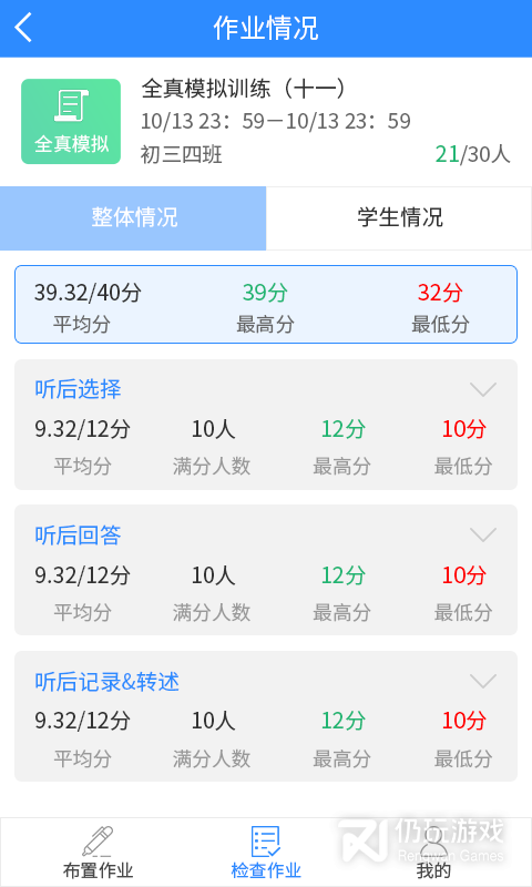 分数情况:对学生完成的作业或者测试进行检查与打分;