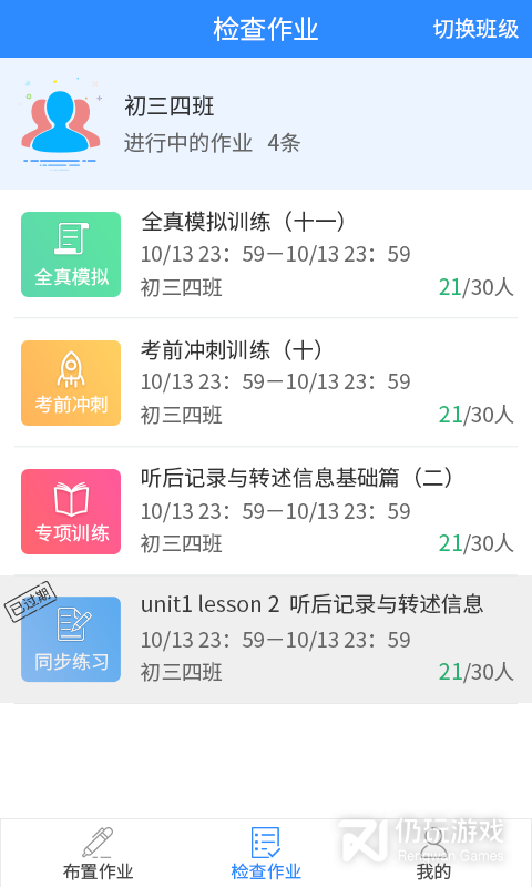 班级切换:能够同时对多个班级进行教学和发布布置作业等;