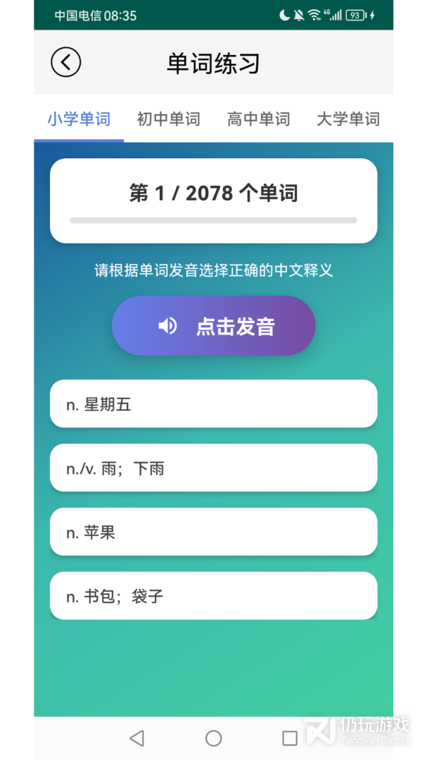 3、音标测试:根据发音选择正确的音标,测试对音标的掌握程度;