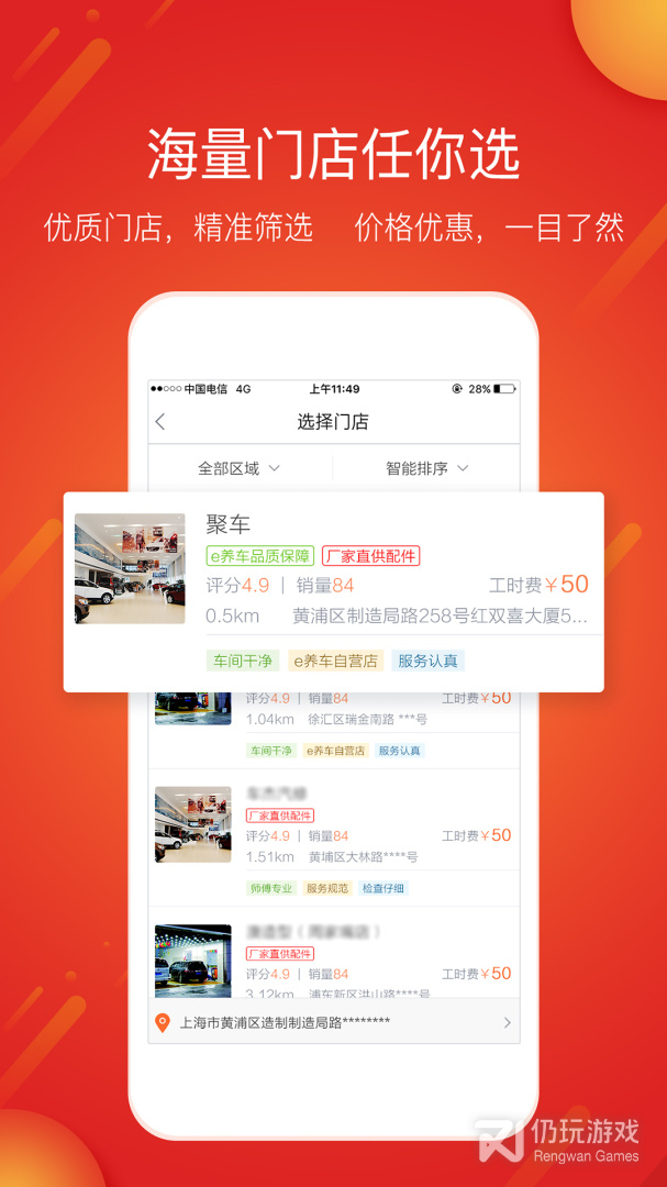 汽车保养、修理必备e养车!这款软件不仅能为你提供一键预约,到店保养的便捷,更可以让你在这款软件中享受到厂家直供,100%正品!感觉不错的话就赶快下载软件开始使用吧