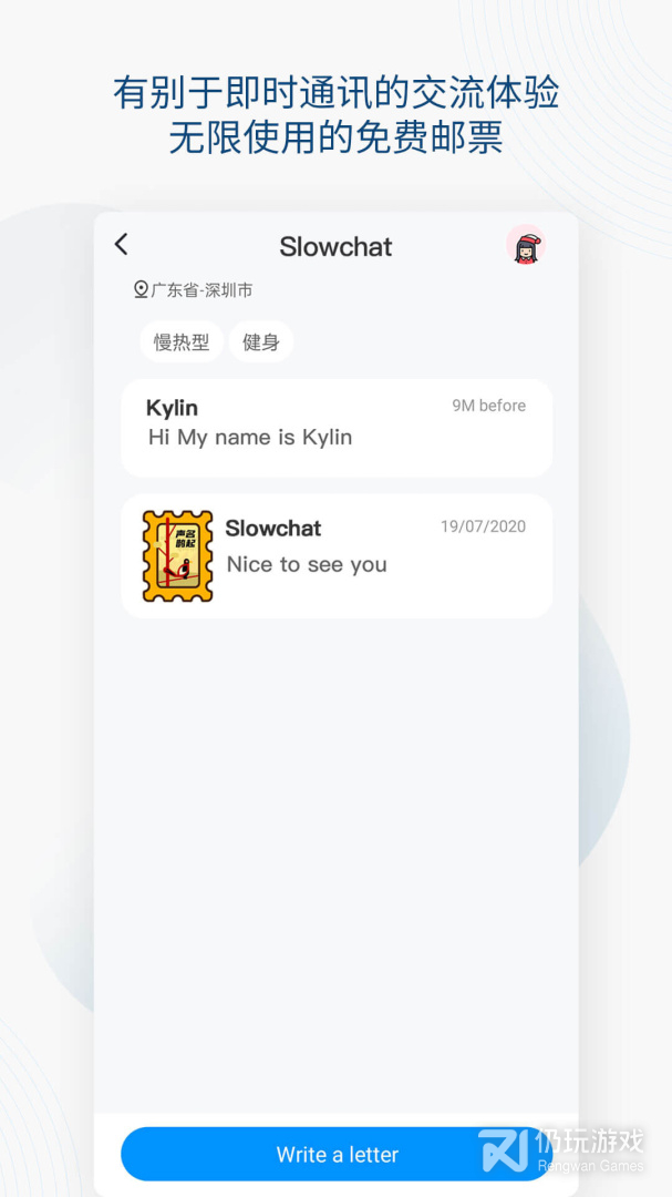 Slowchat根据400多个兴趣标签为你推荐BestPenpal,有明信片交换,明信片收集等功能,线上发信慢社交,根据距离计算收信时间,免费邮票,组队玩换明信片游戏,清片,换片,结交笔友,专为笔友而服务的商店,信封,明信片,信纸等,再也不用为怎么挑选而烦恼了。