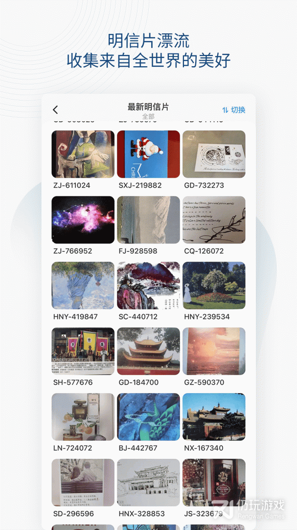 5、互寄明信片,通过平台与笔友随机交流明信片,也可组队参与互换明信片