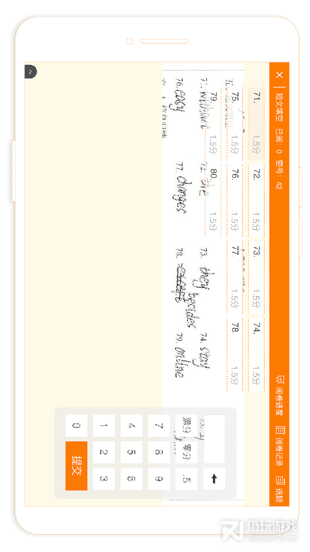2、可以随时分数,全屏模式可以看得更加清楚,支持局部放大功能,实时记录批改进程,阅卷是否有误也能清晰看到