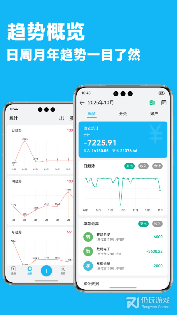 3、每一笔账单都是可以详细记录的,数据信息随时可以查看和统计。