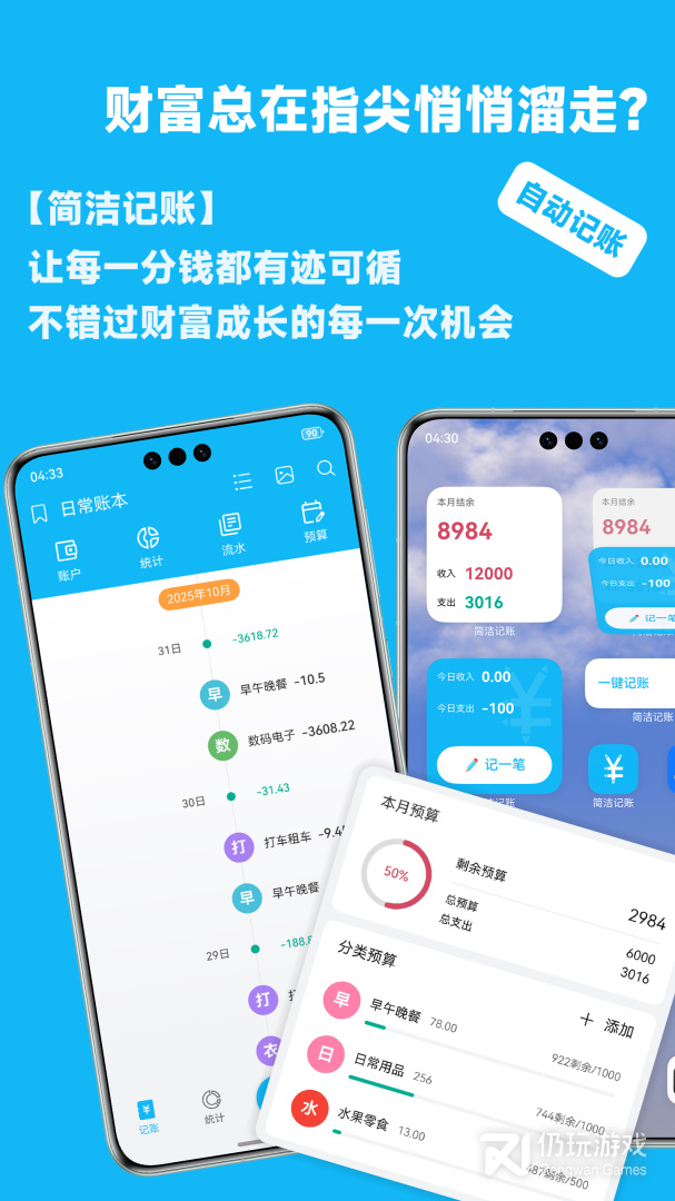 2、生活中花钱总是花的不明不白?不知道什么时候钱包已经空了,却不知道到底怎么花的?想要计划花钱却不知道该怎么做?下载简洁记账,轻轻松松养成良好的花钱习惯