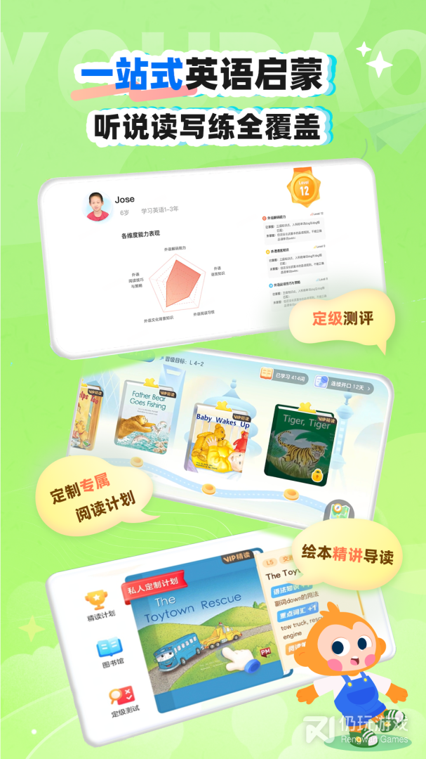 1、分级阅读,满足各个级别孩子的英语学习需求