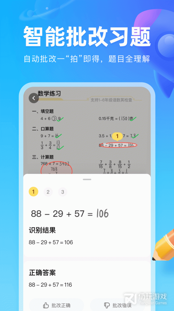 2、智能批改 - 题目试卷拍照即改,作答结果秒出正误判断