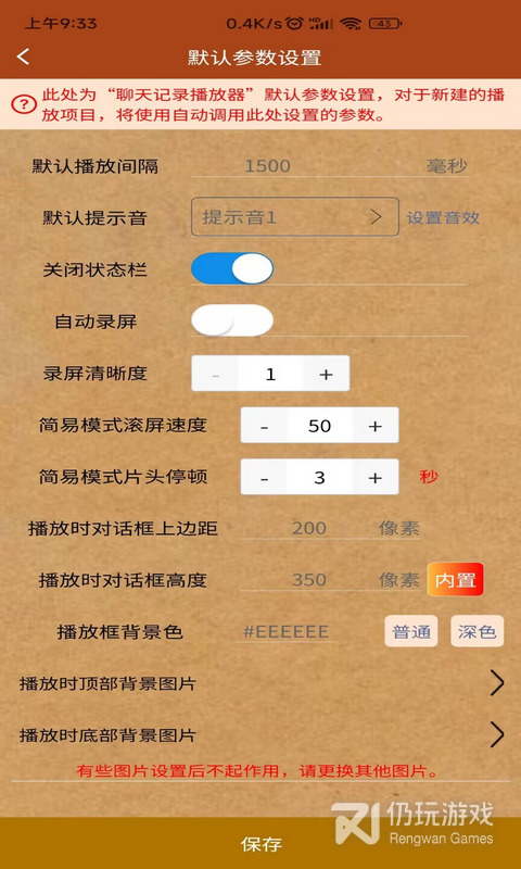 1、默认参数都可以来进行设置,清晰度和滚屏模式等都可以来设置,为大家提供了便利