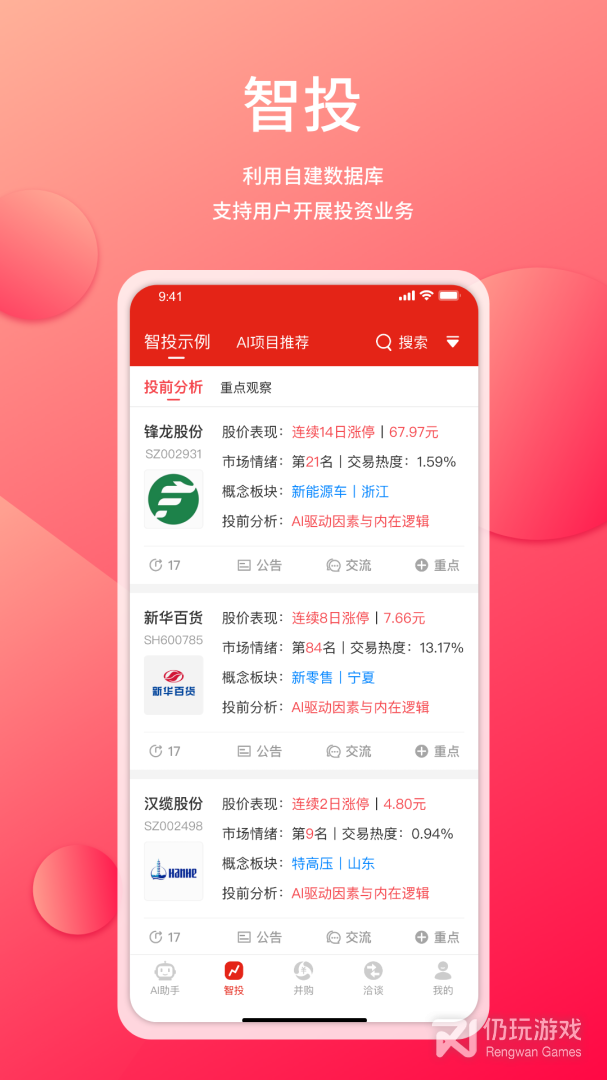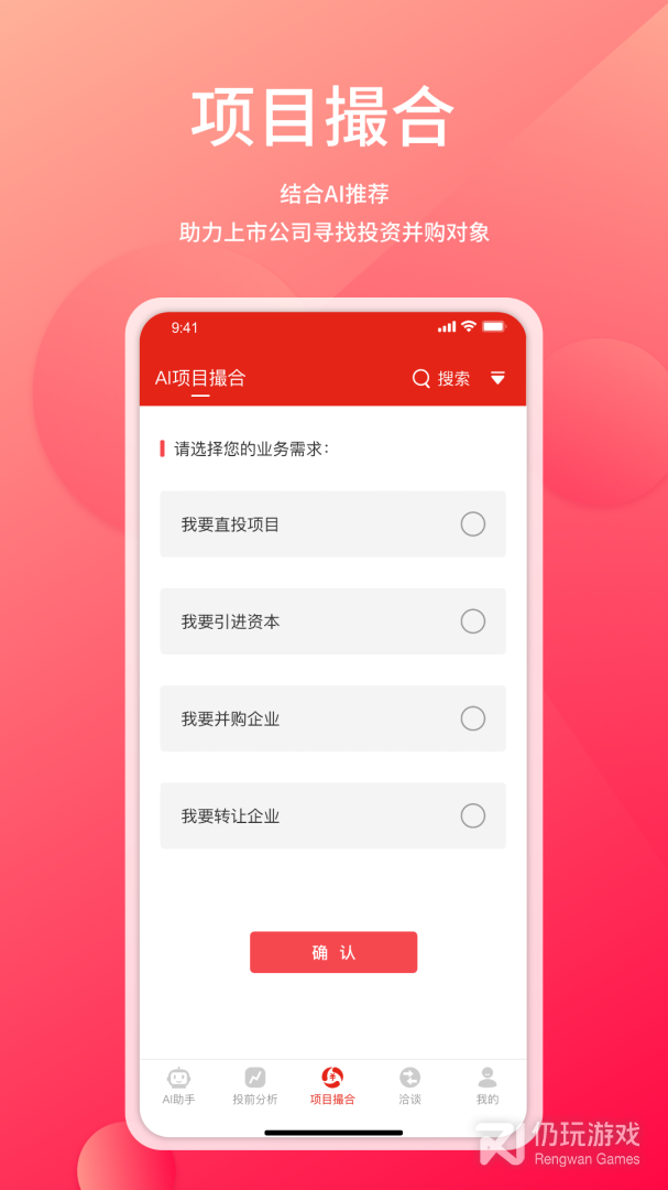 本产品以视频加社交方式,为企业用户寻找专业投资和资本运作机构提供服务,为专业投资和资本运作机构寻找优质项目提供服务。同时,为各方学习资本运作专业知识提供内容服务。