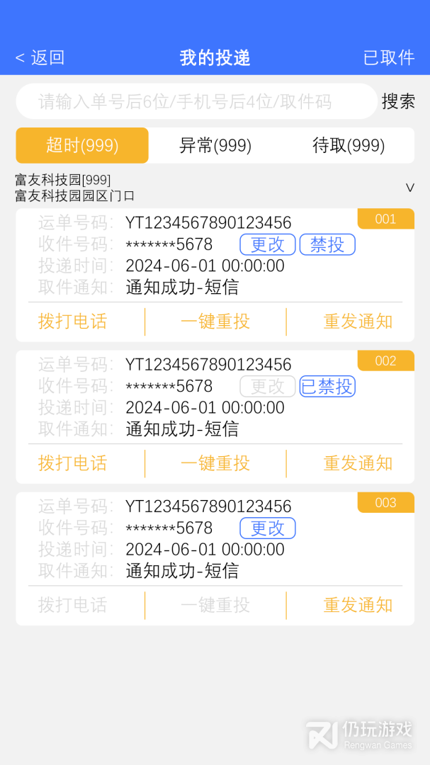 1、快递员可在平台上轻松的管理订单信息,查看自己需要投递的地址以及收件人的信息,用户也可以在线查询商品取件和投递的情况。软件还提供快递柜的配套服务,快递员可通过该软件直接预订收件的箱子哦~